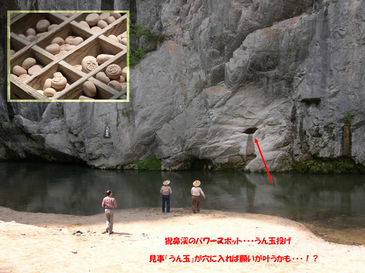 対岸の岩穴にうん玉を投げて、入れば願いが叶うと言われているスペシャルスポット\(^o^)/